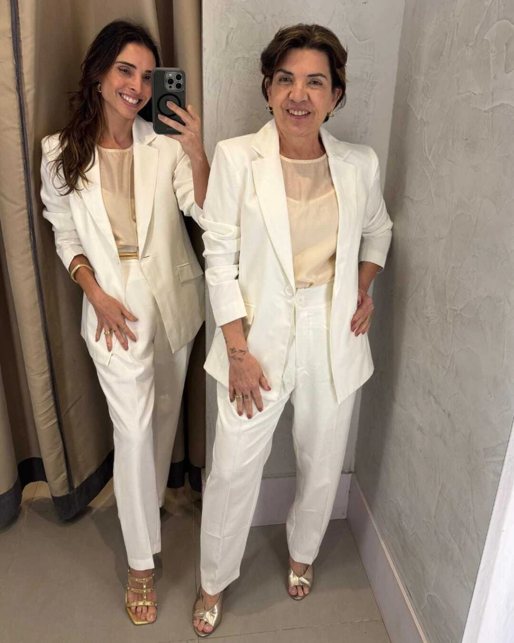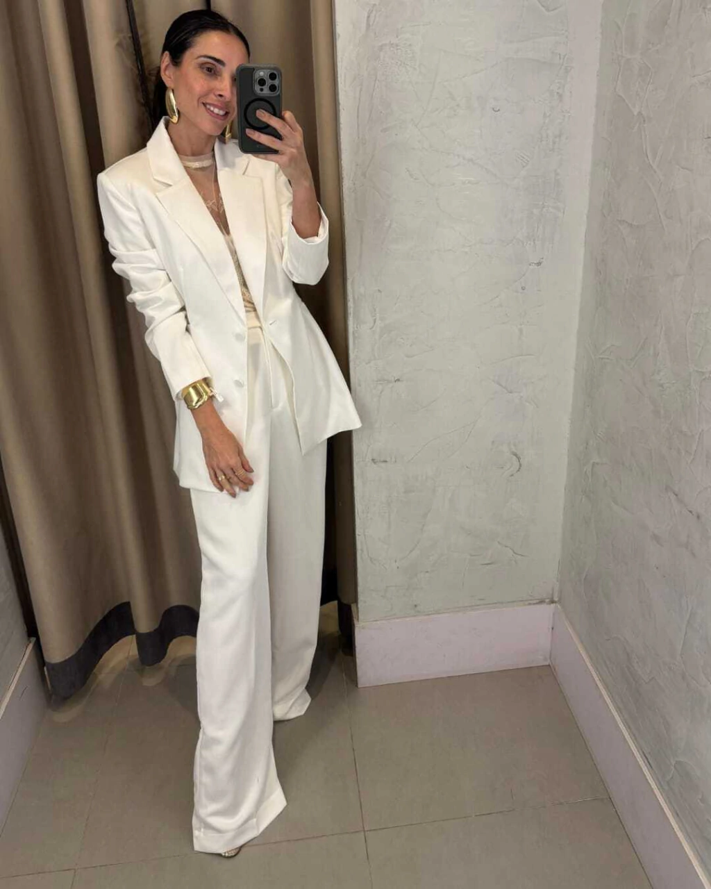 O corte estruturado e o design atemporal fazem deste blazer a escolha perfeita para produções formais ou modernas.