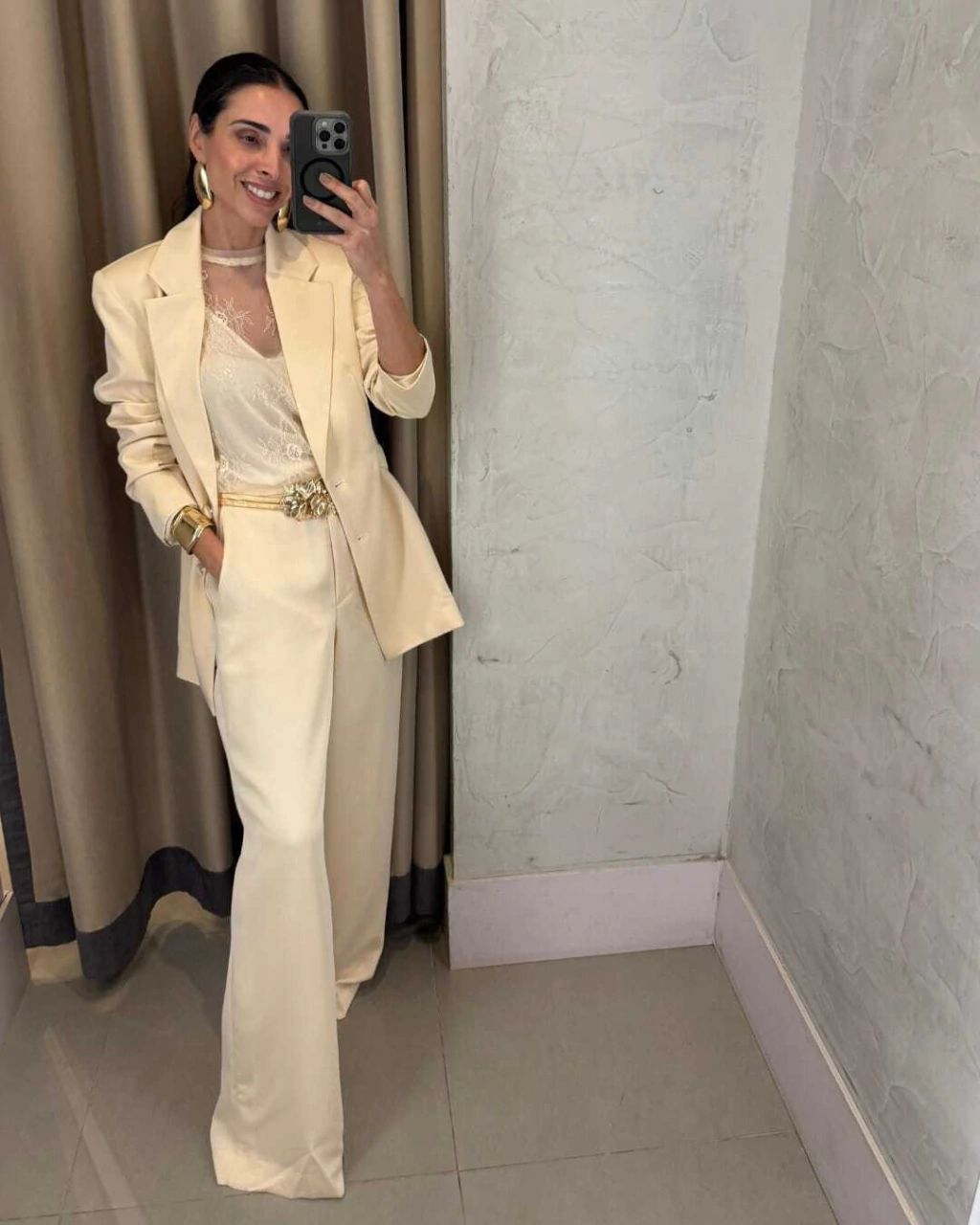 O corte estruturado e o design atemporal fazem deste blazer a escolha perfeita para produções formais ou modernas.